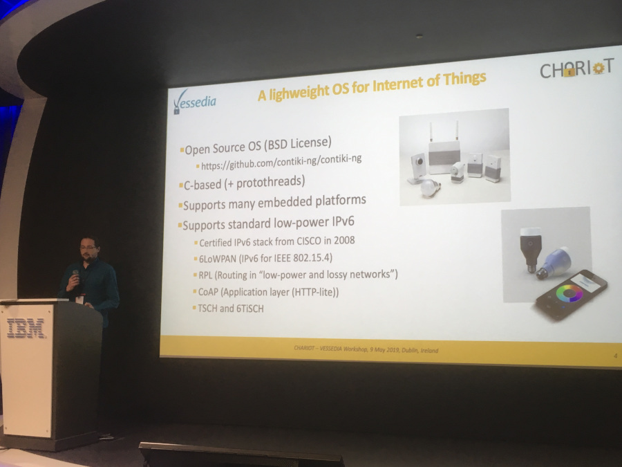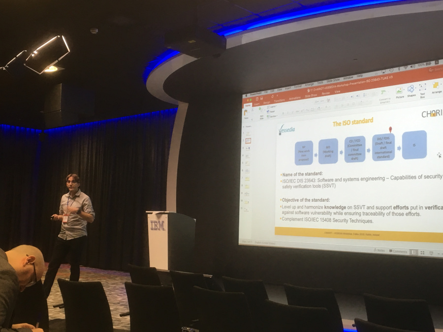 This workshop will be co-organized by CHARIOT and VESSEDIA H2020 projects and take place on the 9th May 2019, in Dublin Ireland, hosted by IBM. During the workshop the evolution of both projects will be presented, including the experience from the users and the first lessons learned on the different tasks. In addition to that a preliminary training on verification tools capabilities will take place. The actions of cooperation with the other IOT project under the H2020 program as well as the dissemination and standardization activities will be analyzed. A specific focus will be in the Living Lab driven from IBM Ireland.