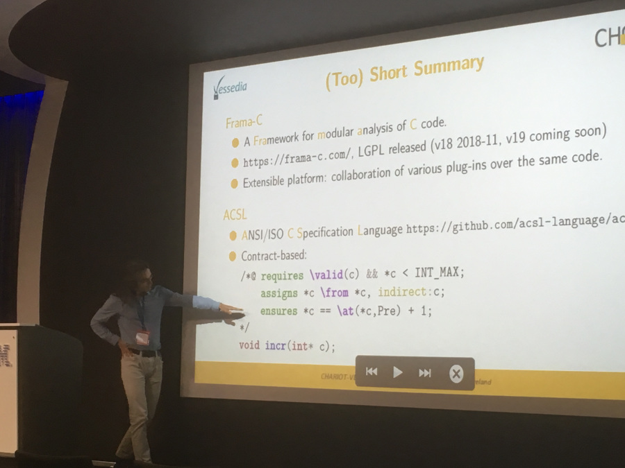 | 14:10 | 14:30 | Static code analysis and Frama-C (Franck Vedrine and Virgile Prevosto, CEA, France) |